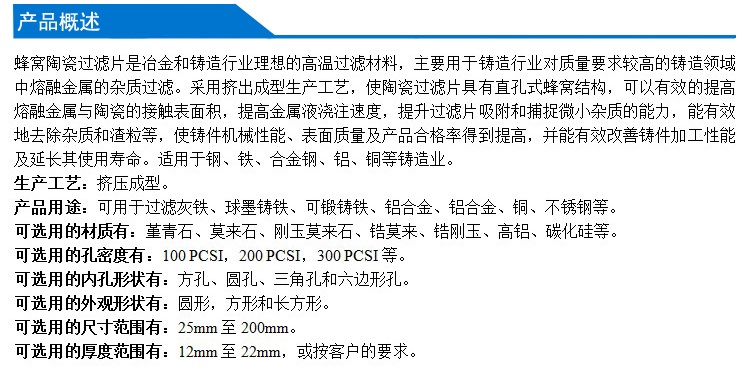 當前位置:首頁>> 蜂窩陶瓷過濾片>>正文